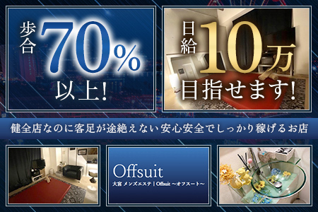 大宮メンズエステ オフスートはネット指名無料・ディープリンパ込みと他店様と差別化する事でお気に入りのセラピスト様と出会うまでお気軽にご来店いただけます。
